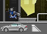Трюкач Вам надо хорошенько разогнаться и перепрыгнуть с трамплина на трамплин через несколько автомобилей. Но главное — успеть остановиться. На заработанные деньги делайте апгрейд байка.